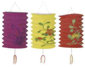 The #50677 - Decorated Chinese Lanterns are $ 6.60 per pack with three lanterns being in a pack.. They measure 6" X 9" and come assorted colors in the three pack.