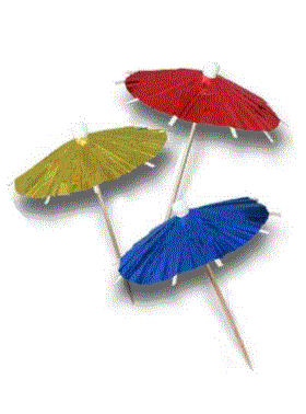 The #60117 - 4" Metallic Parasol Picks are $ 5.75 per pack with 10 in a pack