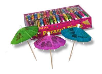 The #60116 - 4" Party Parasol Picks are $ 12 a box with 144 in a box