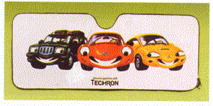 This Reflective Accordian-Fold Sunshade measures 24" X 58" and has silver mylar with polyfoam backing. It folds for easy storage and has an elastic strap. The picture below is of a four-color process imprint. Minimum imprintable quantity is 1000.