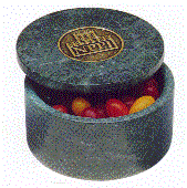 The careful selection, cutting and hand-finishing all contribute to the classic beauty of Verde Marble. The most impressive weight and precision inlay of solid brass or solid zinc medallions make this series a world-class collection. The pictured round box below dimensions are 3 1/8" X 3 1/8" X 1 3/4" and the minimum imprintable quantity is 24