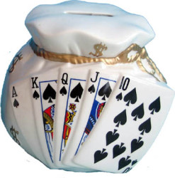 Both of the Playing card banks measure 4" high X 4 1/4" diameter. Can be custom imprinted on both the top and back. Miniumum custom imprinted order is 120 and minimum order on non-imprinted orders is 12.