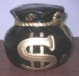 The ceramic Money Bag Banks are 4" high X 4 1/4" diameter. They can be imprinted on both the bag and top. Minimum order for a custom imprint is 144 and they are less than $ 7.00 each. Minimum imprint order for a non-imprinted order is 12.