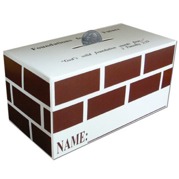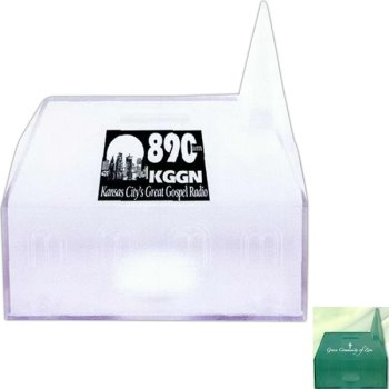 Are you looking for a spark to promote your church? Then look no further than this Church Bank! The 5 7/16" x 6" x 3 1/4" church-shaped bank comes in clear or translucent green. You get a generous imprint area for maximum exposure of your logo through the print method. Please specify coin side or non-coin side on your order. Your brand name or cause is sure to turn some heads at your marketing event when paired with this item. The custom imprint area is 3 1/2" X 1 1/4". Less than $ 4.25 each in the minimum of 100.