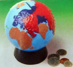 This 5" tall globe bank features colorful land masses and blue oceans. The perfect promotional item for a financial institution, global investment firm, or charity organization. With custom imprinting you can add your company or organizations logo. It is a fun yet useful promotional item for spreading your global message. Less than $ 3.25 each in the minimum of 144.