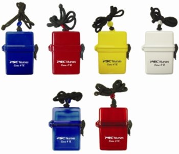 Are you playing it "safe" with your marketing campaigns? Then have your company name and/or logo printed on these colorful, swim time accessories! This swim safe box features an adjustable neck lanyard to keep your money close along with a hinged lid for secure closure. Features locking latch on side and rubber closure to keep money dry and safe. A creative way to promote local community centers they'd also be great giveaways during tradeshows! Your custom imprint appears in the 2 1/4" X 1 1/2" area. Less than $ 1.50 each in the minimum of 300.