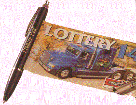 Here is a ballpoint pen that has a pull-out banner area of 2 1/4" X 6" that can feature your products, convention schedule or you name it on not only one side but two sides of the pull-out banner !. The banner area can be printed in up to four colors (even catalog sheets) plus you can imprint the barrel of the pen. The imprint area on the banner is 2 1/4" wide X 6" high and the imprint area of the pen is 2" wide X 1/4" high. Choice of blue or black ink cartridges. Minimum custom order is 1000. For more information on pricing, etc. you are invited to email: donace@promotionalproductsandideas.com