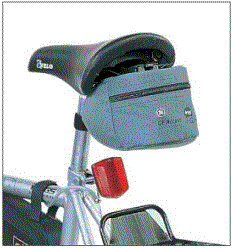 The Bicycle Seat Bag measures 4 1/4" wide X 7" deep X 4' high and is made from Nylon 420 denier. The body is reinforced with a rigid plastic binder board. Fastens under bicycle seat with a plastic molded clip attachment. Minimum imprintable quantity is 25.