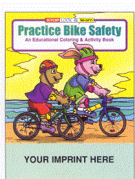 This 8 1/2" X 11" bicycle safety coloring book provides a 7" X 1 3/4" imprintable area for your message. The imprint area provides up to five lines of straight line copy. The Bicycle coloring book ispacked with fun-filled tips, involving how a child can be safe while riding their bike. and promotes safety and stresses cycling rules. Less than $ .70 each in the minimum imprintable quantity of 250.