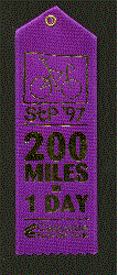 We do many bicycle award ribbons. The ribbons are 2" X 6" and have a card on back side for info on the ride, etc. Minimum quantity is only 100. They are great to identify volunteers for road rallies too.