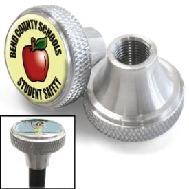 stem caps. Fun and Colorful! These are made from 100% machined alloy and fit bicycles, cars, motorcycles, and trucks - any tire with a Schrader Valve. Available as polybagged in 2s for bicycles or 4s for cars and trucks. Less than $ 5 each in the minimum of 100.