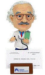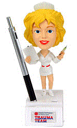 Both of the stock Nurse Bobblehead doll and the Doctor Bobblehead doll measure 6 1/2" X 2 1/4" X 3 3/4" and feature an imprint area of 1 3/8" X 5/8". Your custom imprint appears on the base or the imprint can also be put on the clipboard that the Nurse or Doctor is holding. Minimum imprintable quantity is only 25.