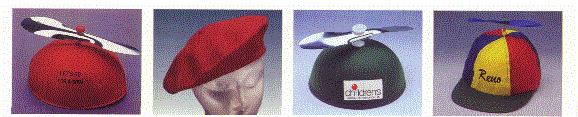 Here is a good selection of hats that are sure to dazzle the recipients. If you have a theme let us know and we can usually find one that will fit your needs. Pictured below from left to right are the Better Felt Propellor Beanie (minimum imprintable quantity 50) with colors of blue, green, red and yellow available, the Wool Beret available in Black, Red or Green, the Propellor Beanie (minimum imprintable quantity is 500) available in colors in assorted colors, and the Multicolor Propellor Cap (minimum imprintable is 72) and the colors are as pictured.