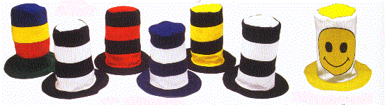 The Kool Kat Hats come in a variety of colors and the Smile Face Kool Kat is available as shown. Minimum on any of these is 12 dozen.