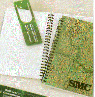 Both of these items are made from recycled Circuit Boards. The Wirebound CyberJournal is 5" X 8 1/4" and has a 50 page blank journal and is bound with two recycled circuit boards. The imprint goes on the front side. The CyberBookmark measures 6" X 1 3/4". Minimum imprintable quantity on the CyberJournal is 50 and on the CyberBookmark the minimum is 500.