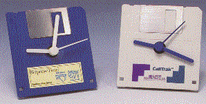 This 3 1/2" X 3 1/2" Diskette Analog Clock is available in either blue or gray and provides an imprint area of 2 1/4" wide X 3/4" high. It runs on one AA battery. Minimum imprintable quantity is 50.