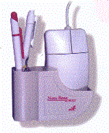 Our Pen/Mouse Holder includes tape to adhere to the side of monitor or you can just keep on the desk. The size is 2" X 4" X 2 1/2" is available in the Computer Beige color. Imprint area is 1 3/16" X 1 1/2" and the minimum imprintable quantity is 100.