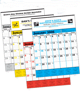 These are great calendars for manufacturers, construction, industrial supply, plastic, steel and equipment manufacturers. The calendars measure 18" X 25" and provide an imprint area of 17" X 4 1/2". This commercial planner has date blocks that contain faintly ruled lines snd symbols denoting the days elapsed and remaining in the yaer. Minimum with your custom imprint is only 50.
