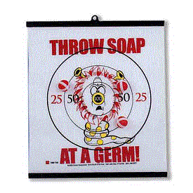 This 15" X 17" wall mounted dart board comes with 3 velcro balls and provides ample area for your custom imprint of 12" X 14". Minimum imprint area is 24.