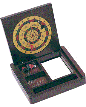 The Executive Dart set measures 5" X 5" and can be set up on a desk or hung on a wall. It comes with six darts in a case and the case provides an imprint area of 2" X 3". Minimum order is 50.
