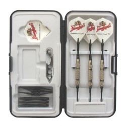 Dart set includes 3 darts, case, extra tips, extra shafts, extra set of flights and a wrench. The custom imprint is on the case. Minimum order is 100.