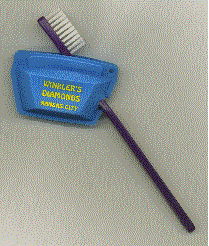 Here is a great item that keeps your toothbrush enclosed in a small pouch. The pouch is detachable from the toothbrush and both the pouch and toothbrush can be imprinted. Minimum imprintable quantity is 250.