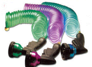 This amazing water hose does not kink or tangle. It is made of high quality 3/8" polyurethane with the highest quality brass swivel fittings. The hose comes with a one year guarantee against abrasion, stretching and kink damage. This lightweight hose is not only great for pets but also for garden, autos, boats and RV's. It is available in a 12 1/2 foot (best for pet washing), 37 1/2 foot ( best for car and horse washing) Has a 9 setting nozzle. Your custom imprint goes on the hose end or nozzle sprayer in a 1/2" X 1" area and it comes with a mesh carrying bag and sink adaptor. Available in Jet Black, Clear Violet, Clear Red, Clear Vlue and Clear Green. Minimum imprintable quantity is 48.