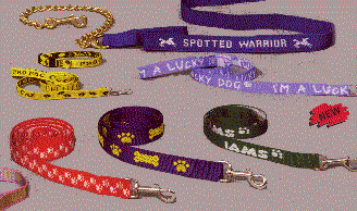 The minimum imprintable quantity on either or dog leash or dog collar is only 50. The Leashes range from a 3/4" X 4' to a1" X 6' size and the dog collar sizes vary from 3/4" for pets under 20 pounds to the larger 1" wide collar.Available in a variety of colors with your custom impri For current pricing please call us at 800 960-9080.