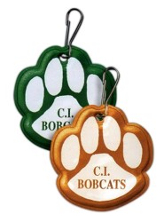 The Zipper Pulls have a write area for ID information and with their reflective feature they are great for use on jackets, warm-ups, bags and outerwear as they show up in the headlights of an approaching car. The reflective Paw measures 2" X 1 3/4" and the imprint area is 3/8" X 5/8". Minimum imprintable quantity is 250.