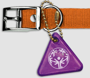 The Collar Danglet is reflective on both sides and can be applied to any pet collar. It can be custom imprinted on either side. Great for breeders, animal hospitals, humane societys or obedience schools. Availabe in a small size of 1" Triangle with a 3/4" imprint area or a larger size of 1 1/2" Triangle with a 1" imprint area. Available in 18 different colors. Minimum imprintable quantity is 250.