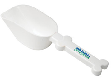 The 10" long Pet Food Scoop is made from biodegradeable plastic and is available in White only., The imprint area is 3/4" high X 3" wide.Minimum imprintable quantity is 150.