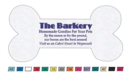 On the left is the medium size dog bone treat that provides an imprint area of 2 3/4" wide X 1 1/8" high with a minimum orde On the right is the Dog bone Four Pack that provides an imprint area of 2 1/2" wide X 2 1/2" high. Minimum imprint on either of these products is 500.