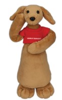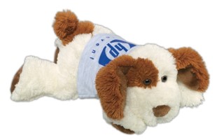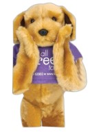 Our mascot dogs can have your imprint on their shirt ! A variety sizes, dog breeds and colors of outfits are available including Ash, White, Black, Green, Navy, Orange, Pink, Purple, Raspberry, Red, Teal, Violet or Yellow. The minimum imprintable quantity is only 48. The stuffed animals have a wide variety of animal outfits that we can put on them.We have many other sizes of stuffed animals. For our free stuffed animal catalogs please call us at 800 960-9080.