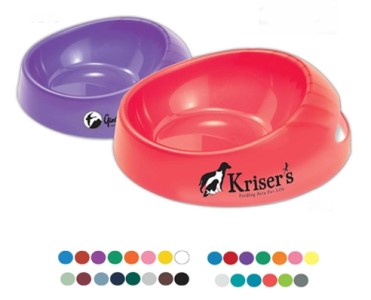 Pictured on the left is the small size pet bowl that is6 3/8" X 7 1/2" X 2 1/2: with an imprint area of 1" X 3 1/2:. On the right is the large pet bowl and it is 7 3/16" X 8 3/4" X 3" and it provides an imprint area of 1" X 3 1/2". Ideal sizes for either a dog or cat. Available in 29 different colors. Minimum imprintable quantity is 250.