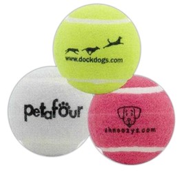 Our heavy duty Tennis Dog Ball s are available in ite and Yellow and made with a non-toxic ink. The imprintable area is 1 3/4" X 3/4". Minimum imprintable order is 100.