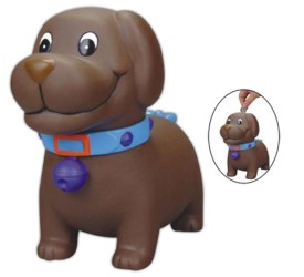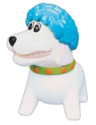 Our Dog Banks are great for a Humane Society and other pet related fund raising. Presented below are just a few of our more popular dog related banks. On the left is the rubber Crazy Canine dog bank that is available in either Pink or Pale Yellow. It measures 9" long X 3 3/4" wide X 7 1/2" high and it provides an imprint area of 1 3/8" X 1/2". The right hand picture is the Blue dog bank that measures 8" X 7 1/2" X 4 1/2" and the imprint area is 1 1/2" wide X 1/2" high. Minimum imprintable quantity on both of these dog banks is 50.