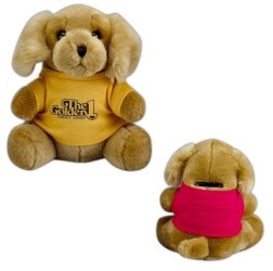 The plush 8" Golden Retreiverbank is a sure fire way to store coins. Put a coin in and the dog barks! Custom imprint area is 2 1/4" X 1 1/5".