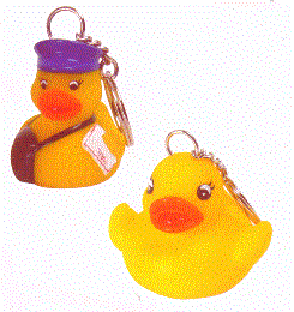 We have pictured below many of our Rubber Duck Keytags and also our Rubber Duck Bathtub Plugs. The minumum imprintable quantity on any of these items is 50. Have a question, need current pricing or to place an order please contact us at 800 960-9080 206 285-5359 or email us at donace@promotionalproductsandideas.com or don_shepherdson8@msn