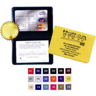 The standard 4" X 2 1/2" vinyl card case has two clear pockets and is great for fishing and hunting licenses. It provides a large imprint area of 3 1/2" X 2 1/4". Less than $ .40 each in the 350 quantity. Available in 15 different vinyl colors.