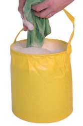Unique yellow PVC fold away 10" X 10 1/4" bucket with carry handle. Great for outside use, from cleaning cars to fishing. Compact, folds away for easy storage. Withstands extreme temperatures. The large imprint area is 5" X 5 "and is ideal for your company logo or imprint. Less than $ 8.00 each in the minimum of 200 .