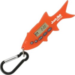 Multi function tool that tracks the length and weight of your daily catch. Track and record each fish you catch and compute your total daily count, weight and length of fish. Includes a clock, calendar and more! Batteries included. Patent Pending . It measures 4 3/4" X 1 5/8" X 1/2" in size and it provides an imprint area of 3/8" X 1/2". Less than $ $ 6.75 each in the minimum of 50.