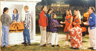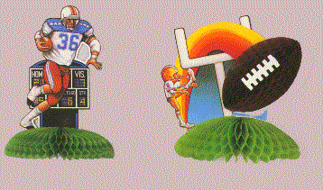 We have many types of football decorations available whether it be for your football awards banquet or any other football related party. Pictured below on the left is a centerpiece that measures 11" while the one on the right is 10". The pictures at the bottom area show various 10" football cutouts that are available for your rooters.