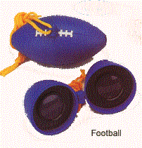 These football folding binoculars actually fold up and look like a football when not in use. We also have folding binoculars available for tennis, basketball and baseball. Minimum quantity with an imprint is 50.