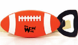 These 4" football shaped bottle opener keytags will keep your advertising message as close at hand. It provides an imprint area of 1" X 1 1/2". Minimum imprintable quantity is 150.
