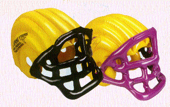 You can pick your school or organization's colors for this 16" Inflatable Football Helmet. Available in a minimum quantity of 50 with your custom imprint. The imprint area is 5" wide X 3 1/2" high.