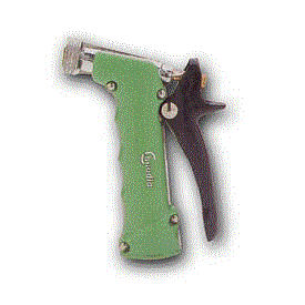 The Pistol Grip Nozzle has an adjustable metal nozzle, with green plastic comfort grip and spray lock. The imprintable area on the handle is 2" X 1/2" with the minimum imprintable quantity being 144.