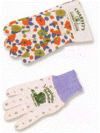 These garden gloves are specifically designed for garden or nursery related industries and sized for ladies only. The top glove is the Ladies Floral pattern with PVC dots and the lower glove is the Ladies Printed Jersey glove. Minimum imprintable quantity on both of these pairs of gloves is 72.