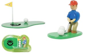 Chip Shotz Golfer. Shoot a round on your desktop! Magnetic balls stick to the green and moveable hole. You control the swing! Individual or group play. Color as shown.Measures 4 1/2" X 2" X 3 3/4" and the custom imprint area is 2 1/8". Less than $ 3.00 each in the minimum of 250.