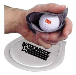 This handy golf ball cleaner fits in your pocket, stays wet to clean your golf ball while keeping your pocket dry. It provides an imprint area of 2 1/4" in diameter and in the minimum of 50 is less than $ 4.50 each.