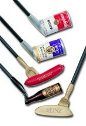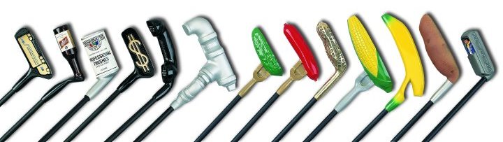 Need to really make an impression with a client ? You may wish to consider our line of stock product putters that we can put your custom logo and imprint on. These are an outstanding golf item and the minimum is only twelve. These distinctive and uniquely shaped models instantly draw attention to your company's product or service. Successful on-going programs have been in dealer promotions, self liquidating retail promotions, customer new and continuing order incentives, or just for fun gifts at special events. All putters pictured below are standard shapes either available with or without an imprint.